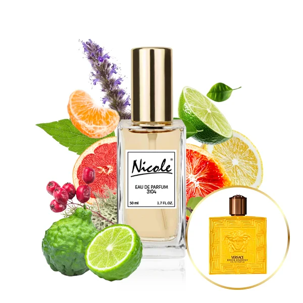 Nicole 3104 EDP inspiriran je originalnim parfemom Versace Eros Energy. Zadržan je ključni kontrast između ledene svježine (menta, limun) i tople, zavodljive baze (vanilija, tonka i ambroksan), čime se postiže slična snažna projekcija i iznimna dugotrajnost. Nicole varijanta slijedi tu beskrajnu energiju i senzualnu ravnotežu, nudeći mirisno iskustvo koje slavi muževnost i snagu.