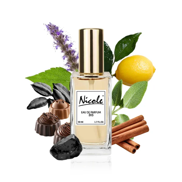 Nicole 3113 EDP är inspirerad av parfymen Black XS Rabanne. Den öppnar med fräscha och energiska, men ändå ovanliga, noter av salvia och kalabrisk citron. Denna kombination skapar en överraskande introduktion: den aromatiska, örtiga fräschören hos salvia står i kontrast till en ljus citrusnot, som omedelbart avslöjar doftens komplexa och rebelliska karaktär.